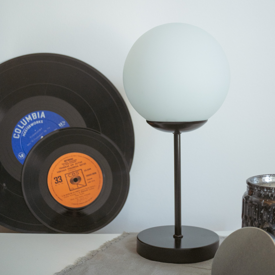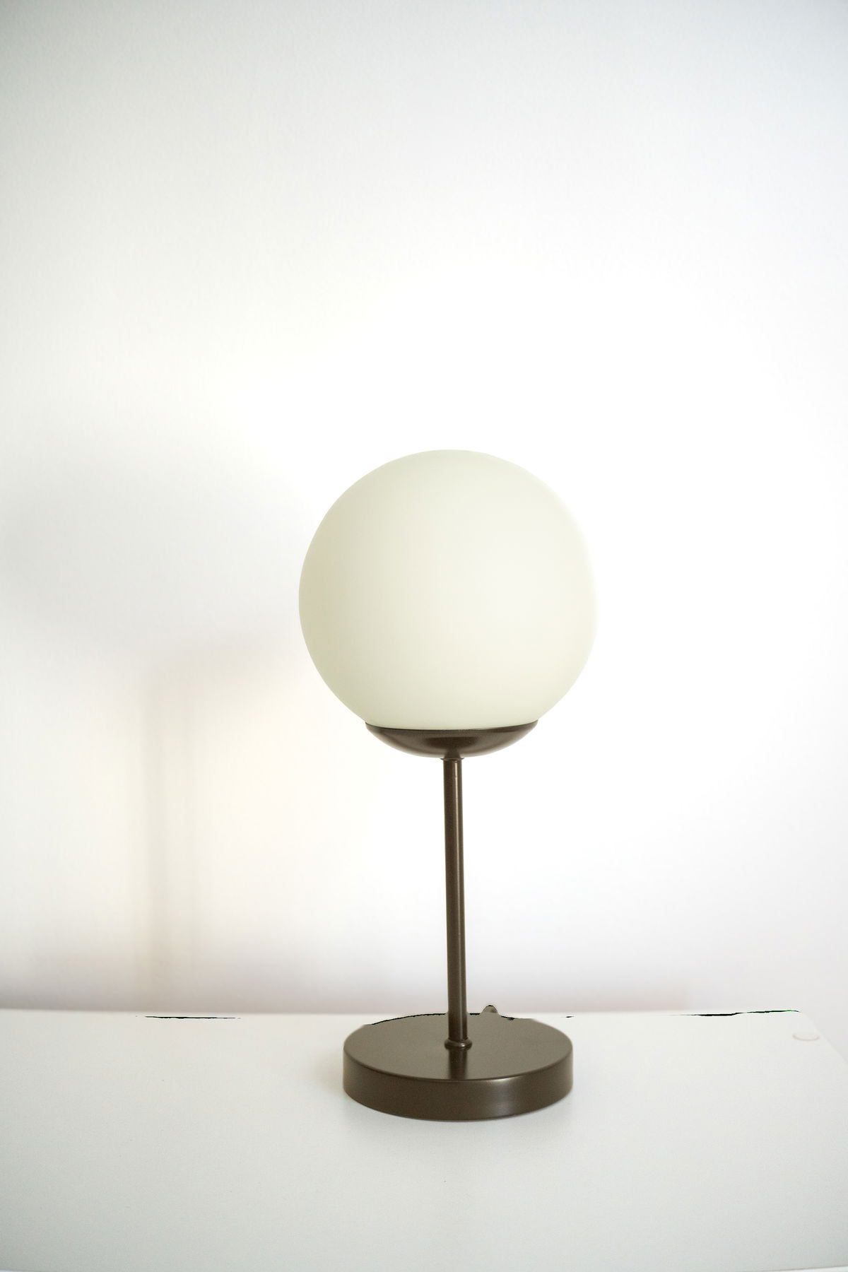 Con base de hierro y pantalla de vidrio opal, esta lámpara aporta un toque distinguido a escritorios, mesas de noche o rincones de lectura. Su luz suave y envolvente crea atmósferas cálidas y contemporáneas.