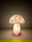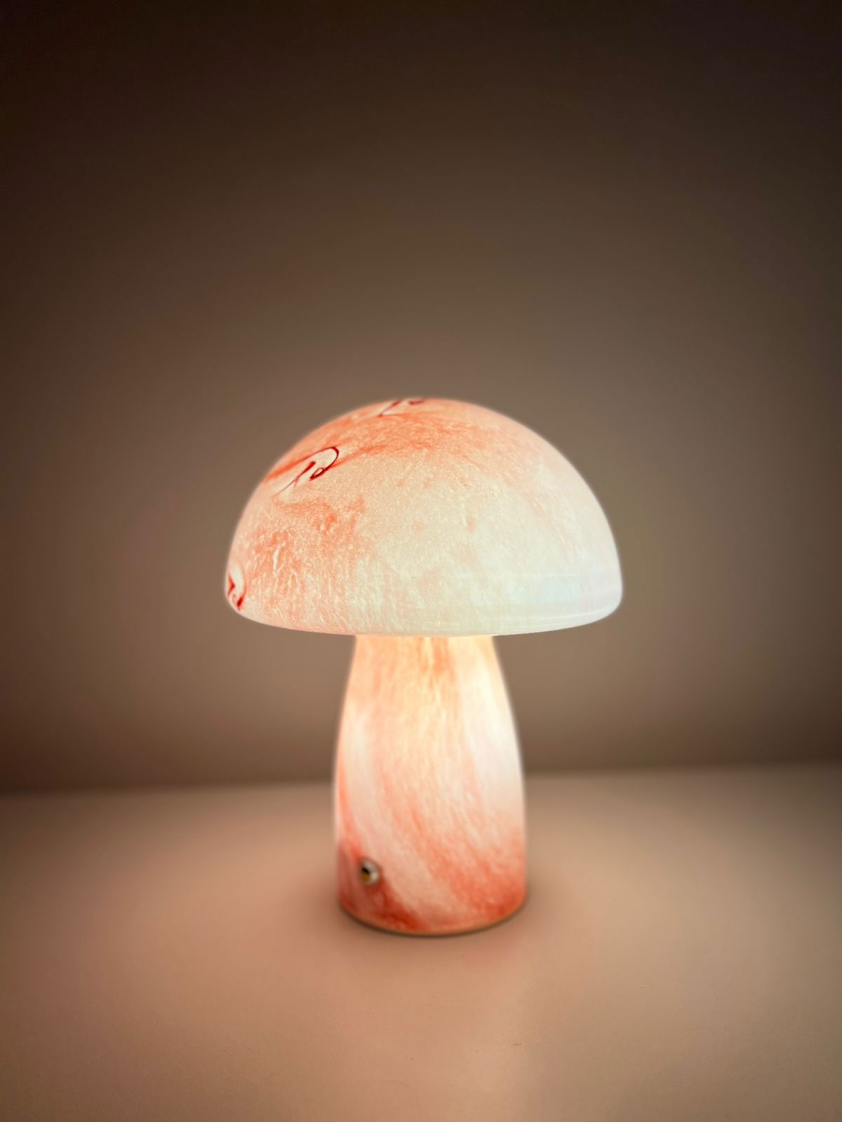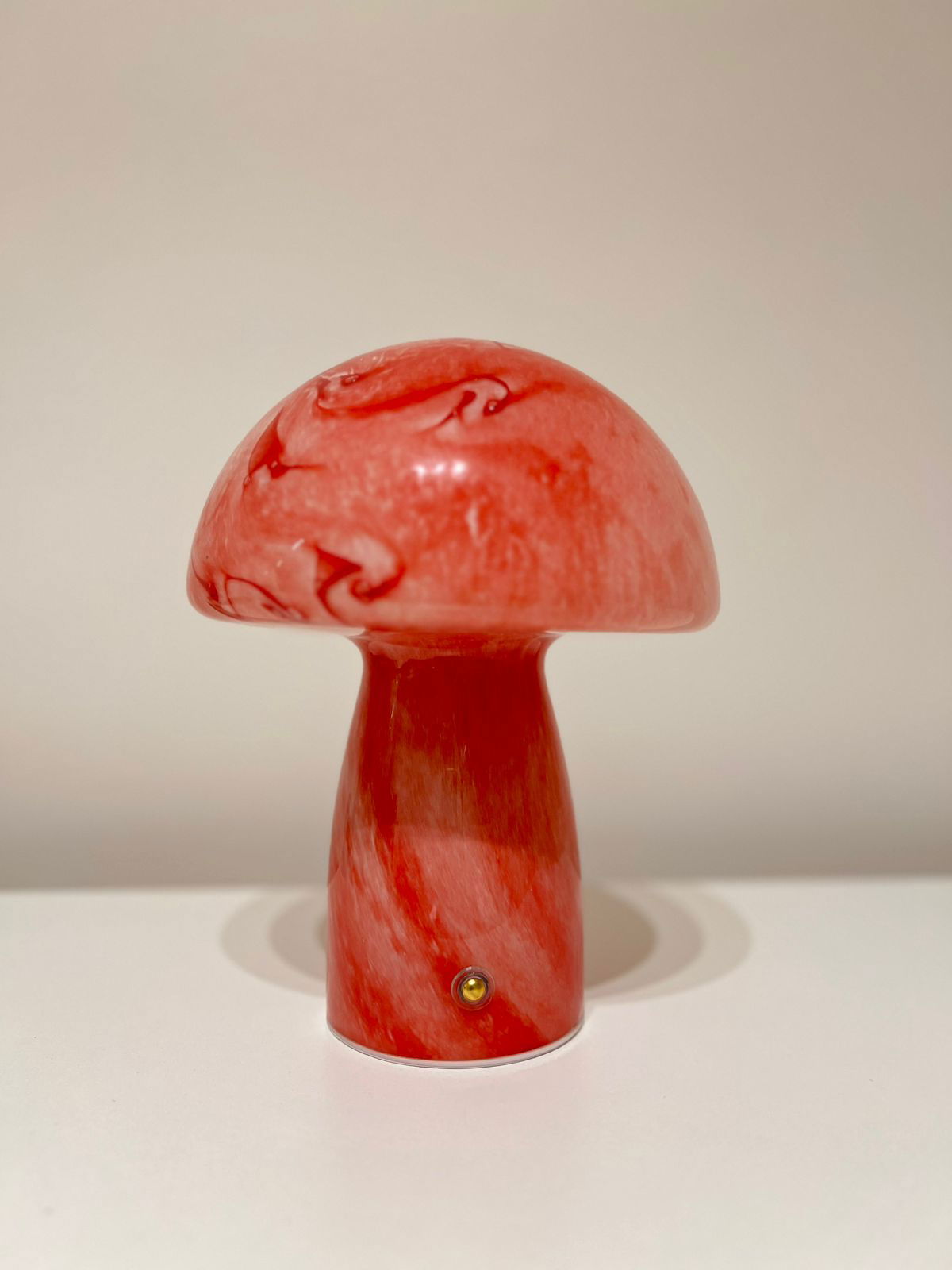 Iluminá tus espacios con estilo y calidez. Su diseño en forma de hongo, realizado íntegramente en vidrio, aporta un toque contemporáneo y delicado, ideal para mesas de luz, estanterías o rincones de lectura.