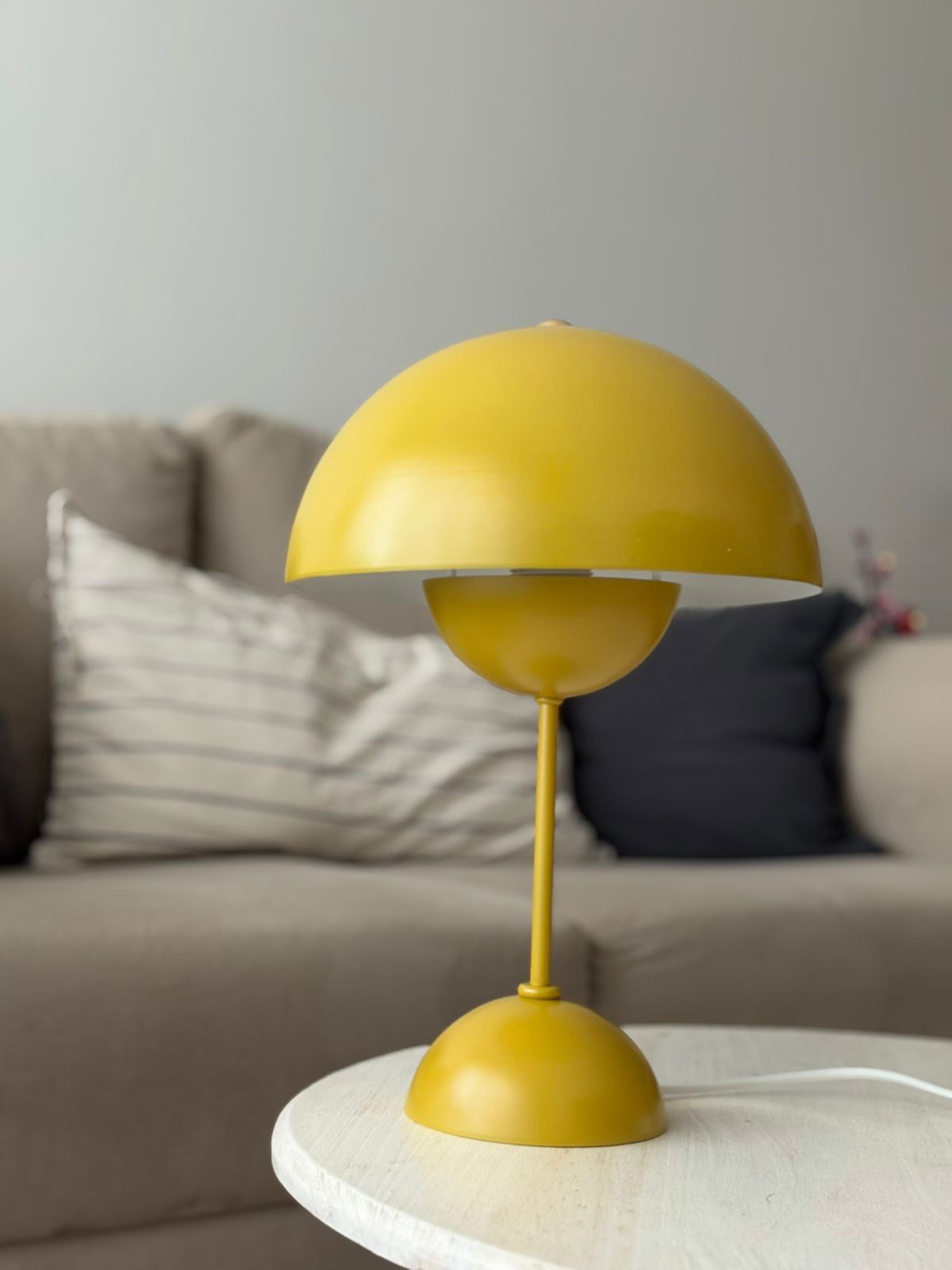 El Velador Flowerpot es la fusión perfecta entre diseño clásico y personalidad moderna. Su icónica forma redondeada se viste de un tono bordo profundo que aporta calidez, carácter y distinción a cualquier ambiente.