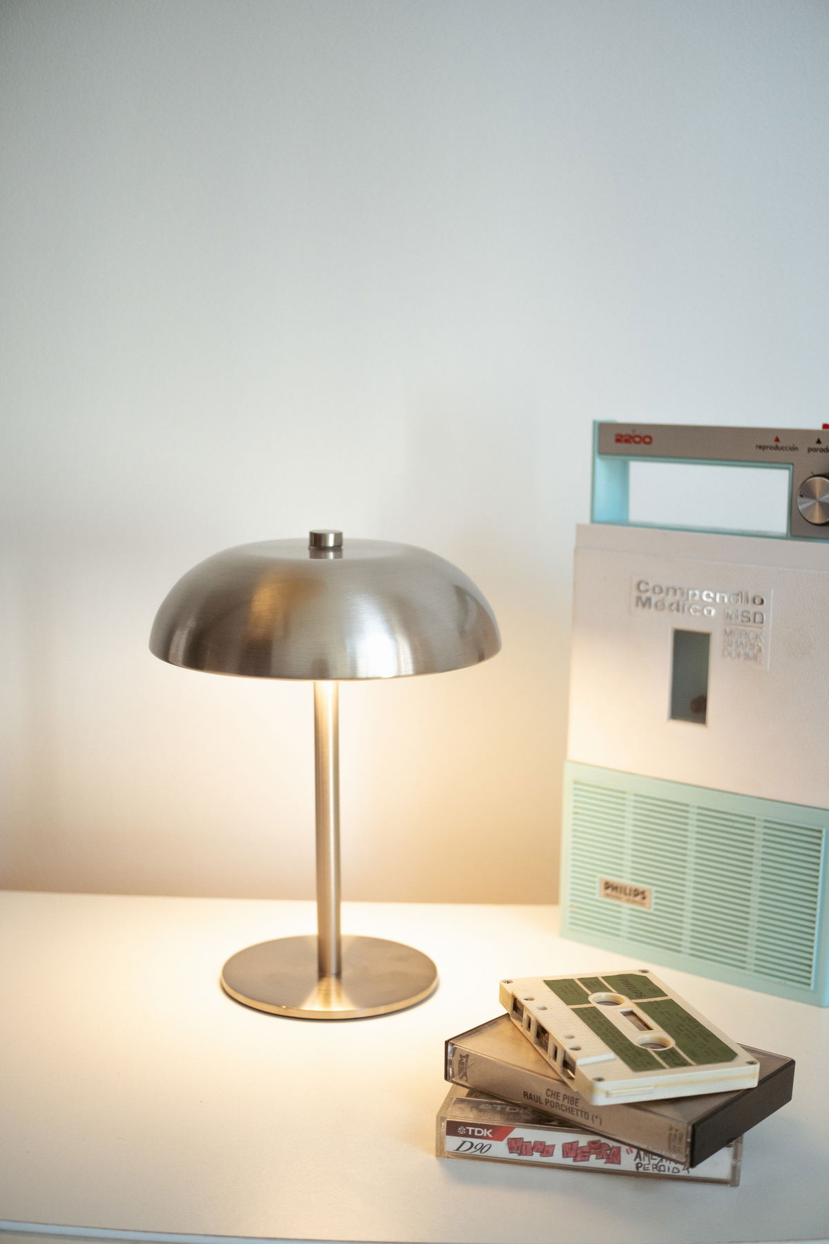 Diseño minimalista, luz regulable y total libertad. Esta lámpara LED inalámbrica en tono níquel combina funcionalidad con estética moderna. Su estructura de hierro monocromo y pantalla semicircular le dan un look sobrio y elegante, perfecto para escritorios, mesas de noche o rincones de lectura.