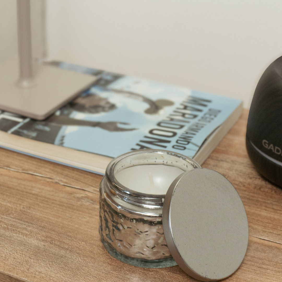Incluye: 1 portavela con tapa + 1 vela