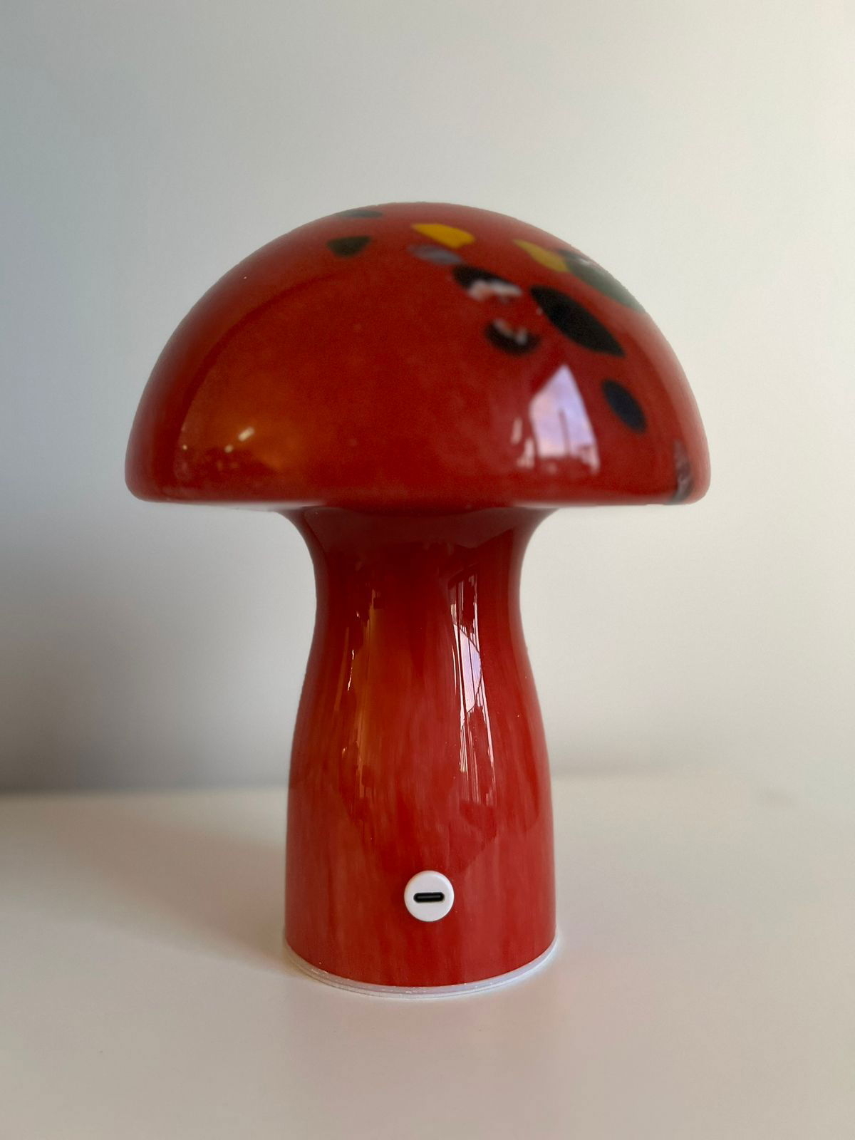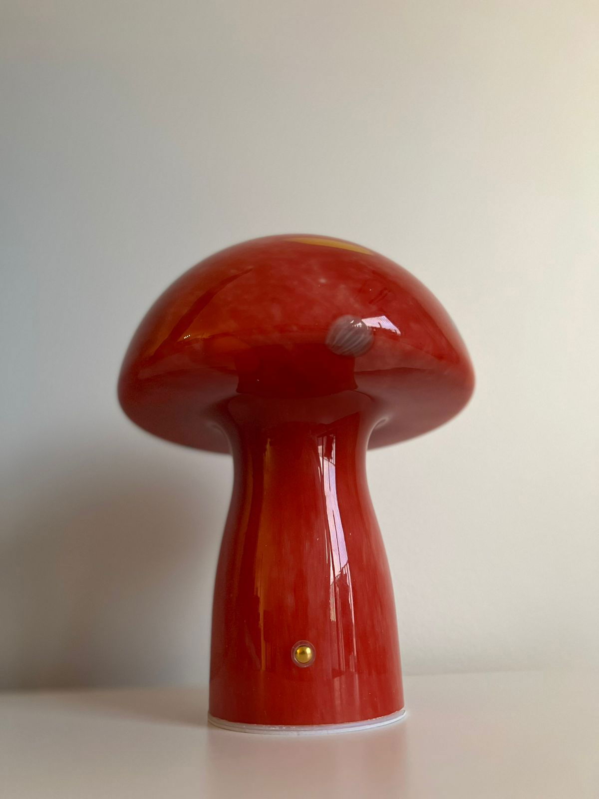 Una lámpara de vidrio con un diseño encantador en forma de hongo, perfecta para crear ambientes cálidos y acogedores. Su luz es de tonalidad cálida y cuenta con regulación de intensidad: solo tenés que mantener presionado el botón para ajustar el brillo según tu preferencia.