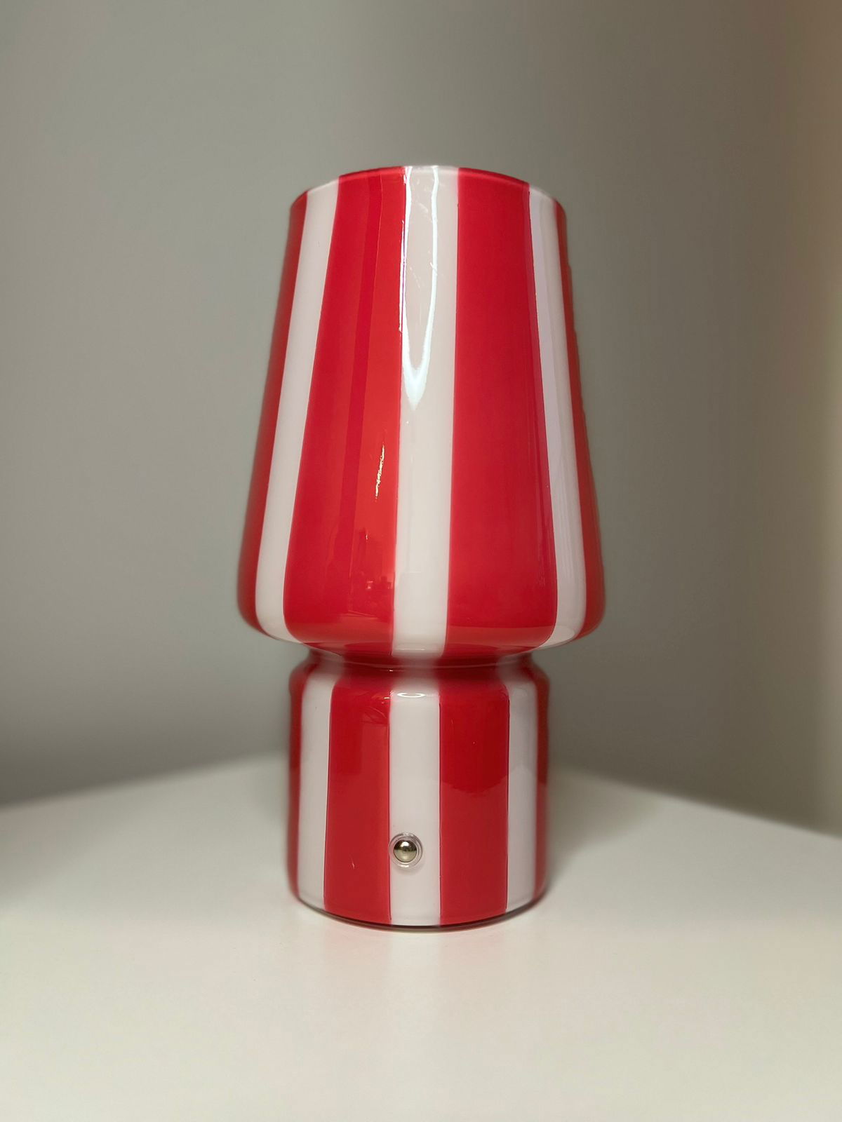 Iluminá tus espacios con esta lámpara inalámbrica de vidrio, diseñada con elegantes rayas blancas y rosadas que aportan frescura y estilo a cualquier ambiente. Su luz LED cálida crea una atmósfera acogedora ideal para dormitorios, livings, escritorios o mesas auxiliares.