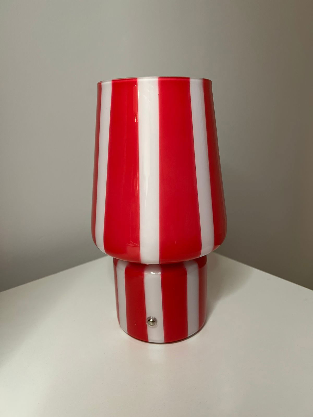 LÁMPARA LED INALÁMBRICA DE VIDRIO | RAYAS ROSA Y BLANCO